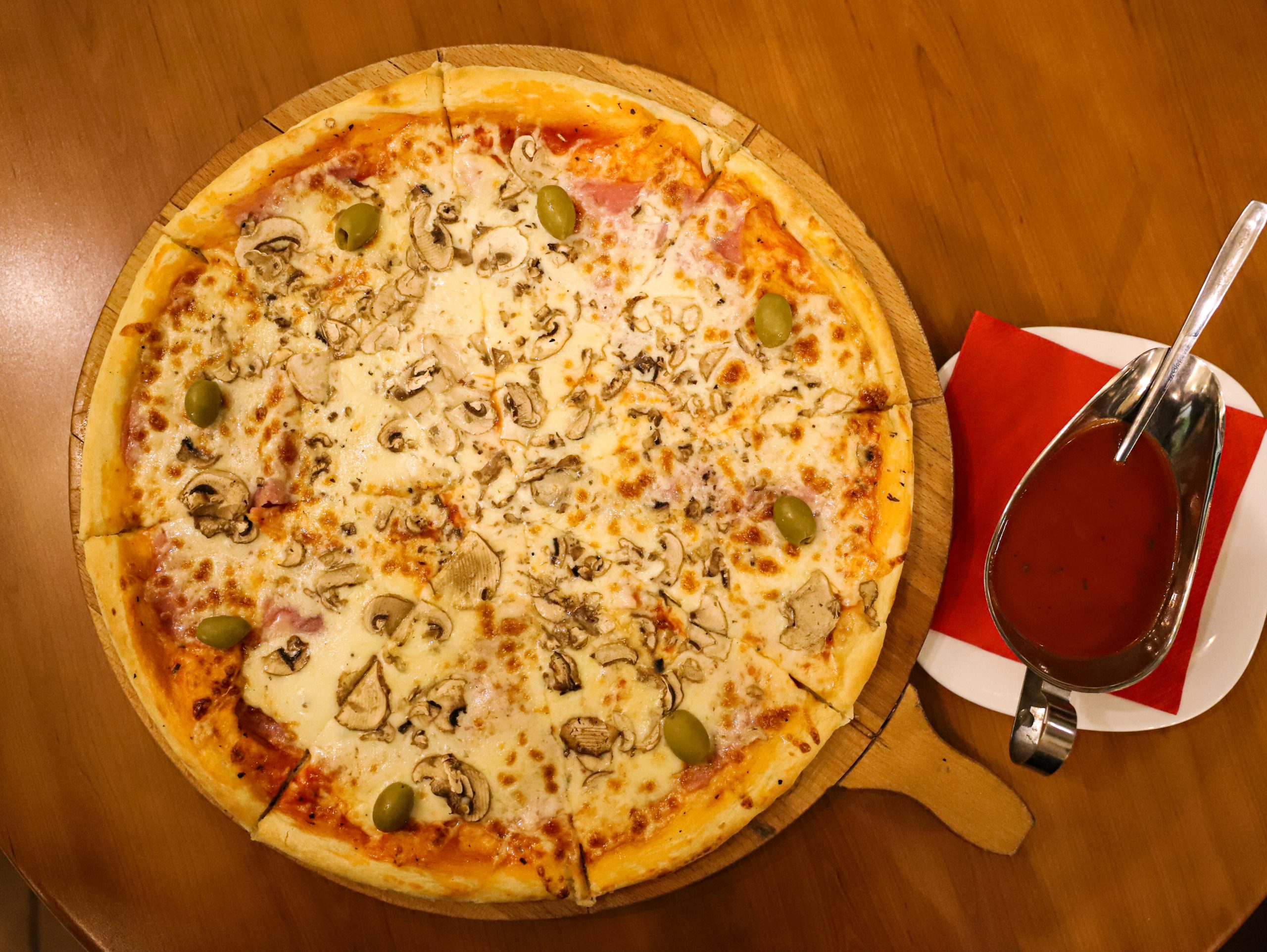 (pelat, sir, šunka, pečurke, seckane masline)